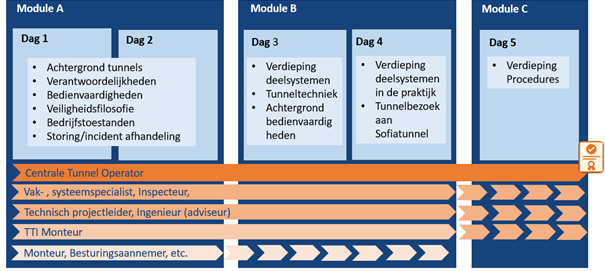 Iedereen die in zijn werk te maken heeft met tunnels in combinatie met tunnel technische installaties zoals: Centrale Tunnel Operator, Vak- en Systeemspecialist, Inspecteur, Technische Projectleider, Ingenieur (adviseur) van ingenieursbureaus, TTI monteur, etc.